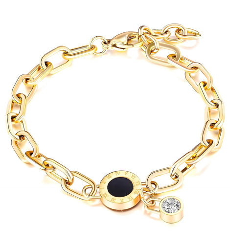 Dieses Armband aus Edelstahl ist mit einem wunderschönen schwarzen Panther verziert und vergoldet mit 18 Karat. Perfekt für den stilbewussten Träger, verleiht es jedem Outfit einen Hauch von Eleganz und Stärke. Ein Must-Have für jeden Panther-Fan.