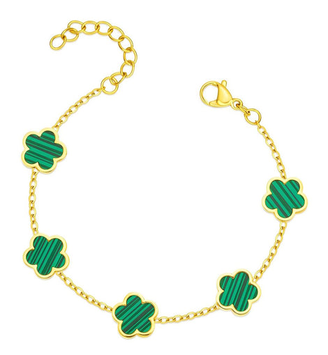 Betonen Sie Ihre Eleganz mit unserem vergoldeten „Kleeblatt“ Armband aus Edelstahl. Die filigrane Symbolik bringt Glück und verschönert jedes Outfit. Langlebig und korrosionsbeständig, wird es Sie viele Jahre lang erfreuen. Luxus für jeden Tag!