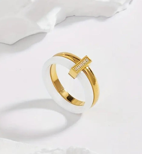 Verleihe deinem Look mit dem "White&Gold" Edelstahlring einen Hauch von Eleganz und Stil. Der vergoldete Ring ist aus hochwertigem Edelstahl gefertigt und bietet eine langlebige, glänzende Oberfläche. Verleihe jedem Outfit das gewisse Extra mit diesem zeitlosen Schmuckstück.